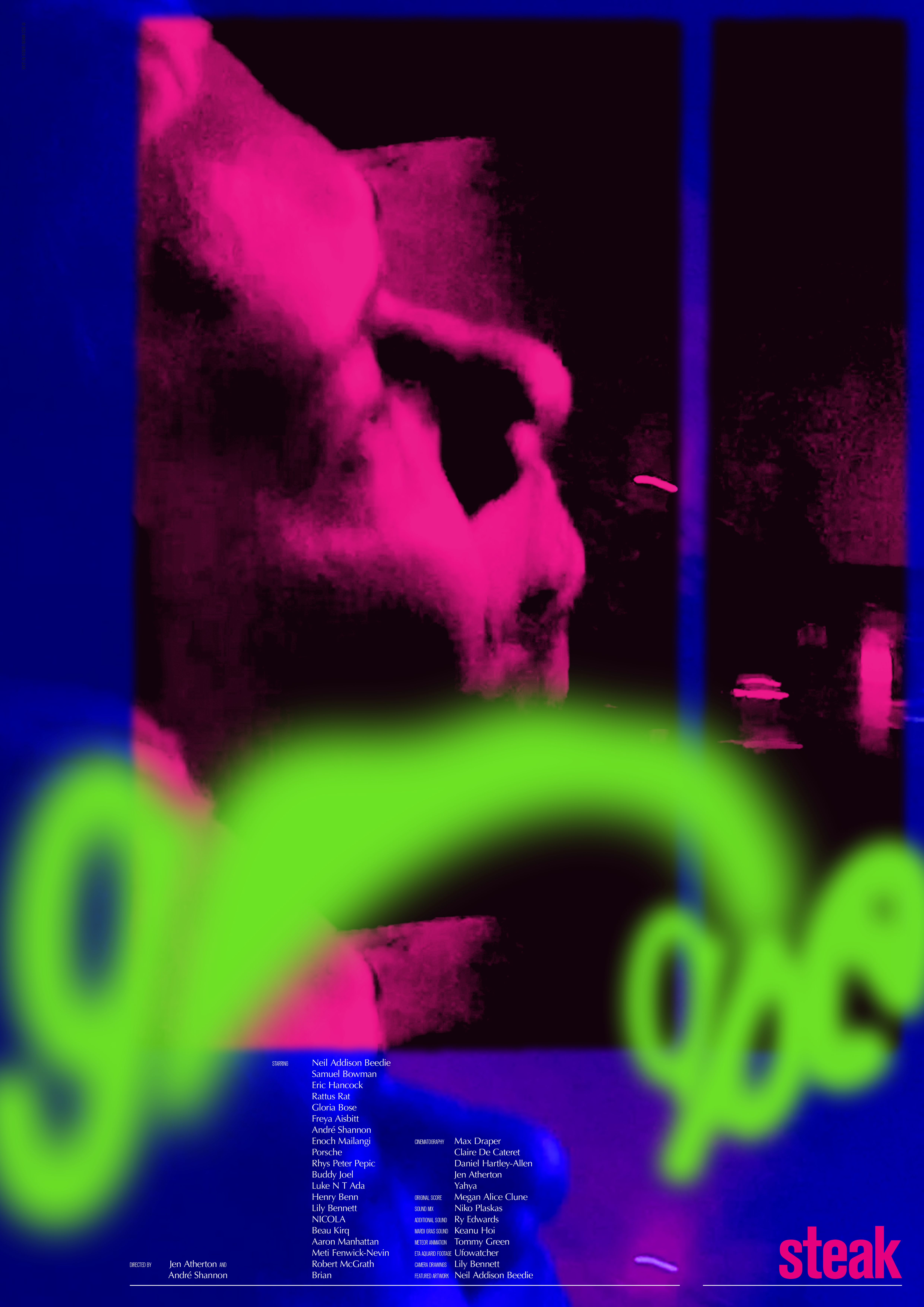 When Toad (Rattus Rat) emerges from a violent bashing they are helped by three incompetent adventurers (Gloria Bose, André Shannon + Freya Aisbitt) who leave them, with some cash, on the side of a country road. The film circles back to uncover how and why these grifters found themselves in the middle of the bush, during Mardi Gras searching for a mysterious cult called The Energy. Narrated by AACTA award winning Enoch Mailangi featuring the incomparable Lily Bennett as Elizabeth, an Australian-American true crime podcaster, Grape Steak is a portrait of a certain time in Sydney told through the eyes of a specific type of Sydneysider.